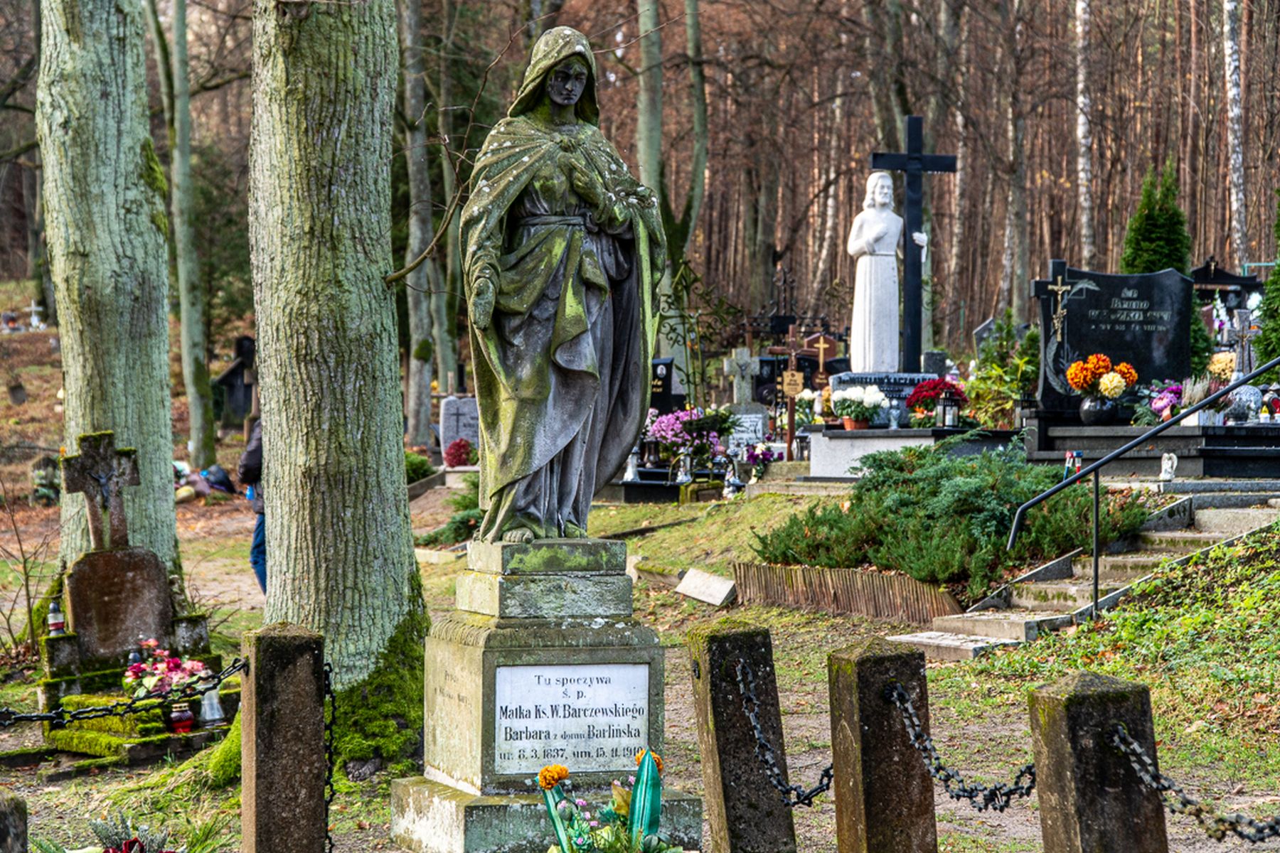 Across the road lies a cemetery for honoured champions of a Polish Warmia, including Rev. Walenty Barczewski.