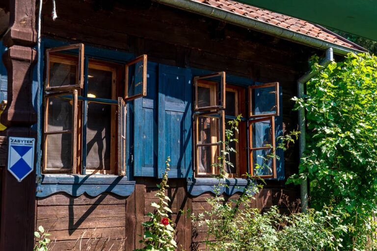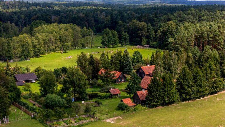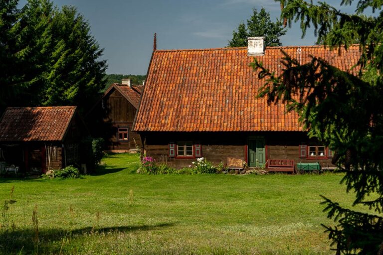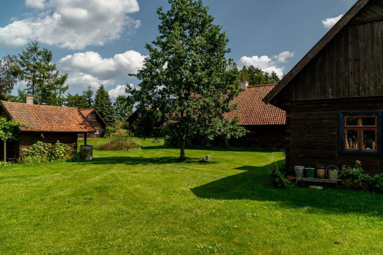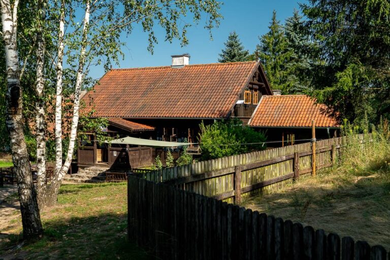 Also known as the Museum of Old Mazurian Architecture, this site is a private collection of six buildings salvaged from southern Mazury and the Mazurian-Kurpie borderland, relocated here by the husband and wife team of Danuta and Krzysztof Worobiec. The first building to be located here was a masonry Mazurian house from the 1930s, which now serves as guest accommodation. Another building now houses the “Oberża pod Psem” Inn, where the owners run a restaurant serving Mazurian cuisine.