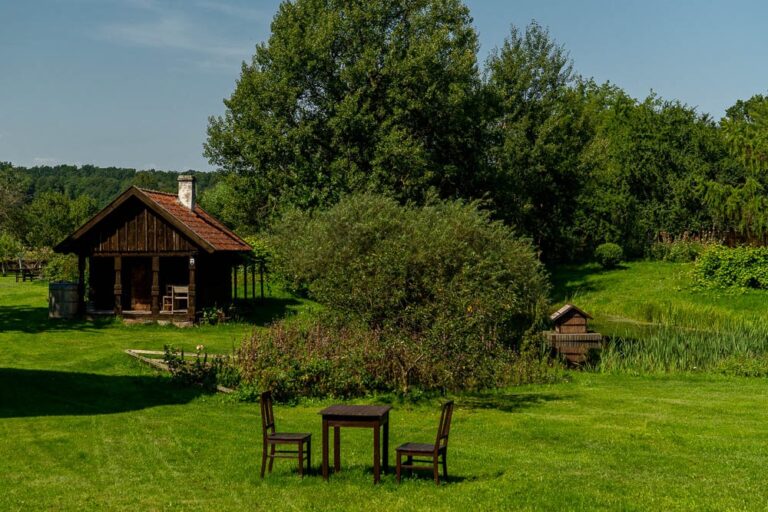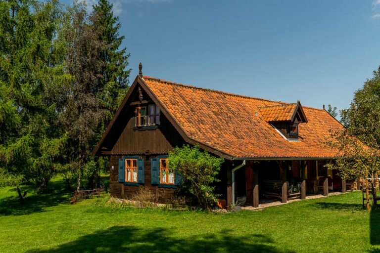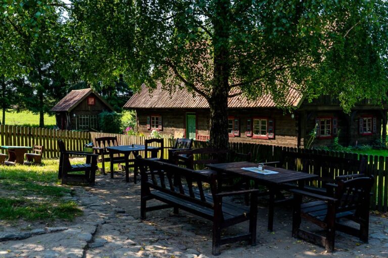 The “Oberża pod Psem” Inn is housed in a wooden, nearly 100 years old historic building. In addition to the Inn, the settlement features the “Early 19th-Century Mazurian Arcaded Cottage” museum and guest rooms.