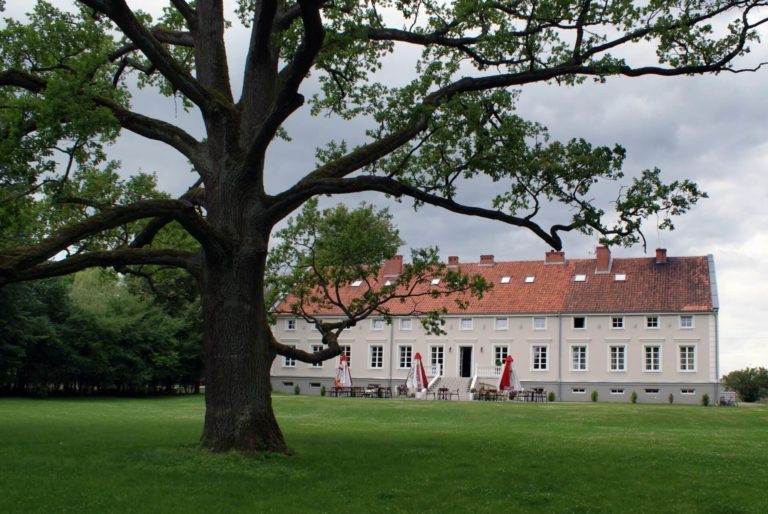 The manor lies adjacent to a picturesque park, whose highlights are the two 300-year-old oak trees and an old larch.