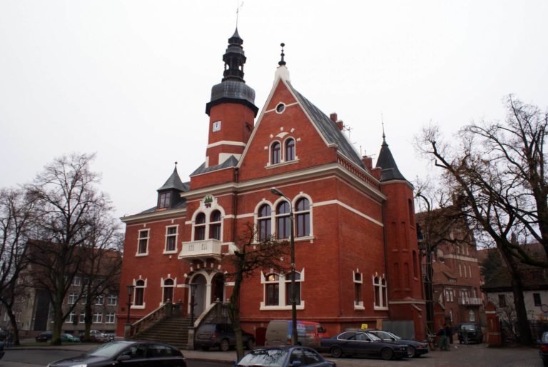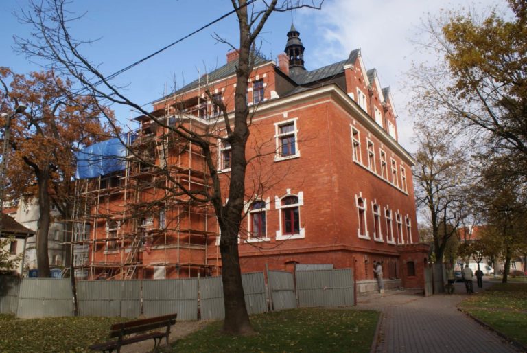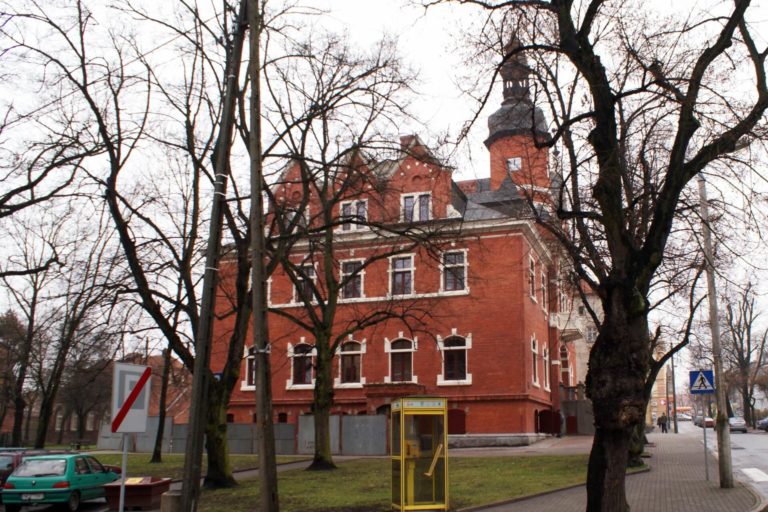 This neo-Gothic edifice is situated in the south-eastern part of the square. It is constructed on a stone base course in red facing brick on a square plan. A three-storey building with a loft, it has a complex body. A stone staircase leads to the main entrance, located on the south side of the building. Another feature is the stylized cross vaulted portal, topped with a round arch on a brick pillar.