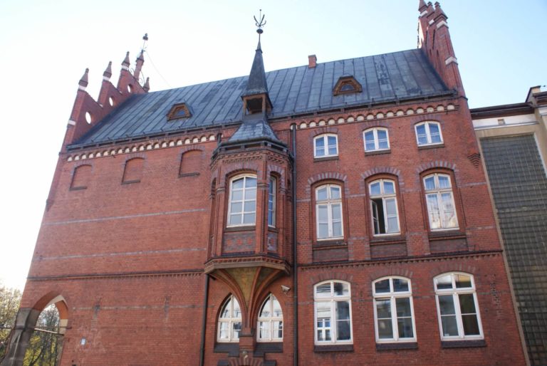 The neo-Gothic style draws from the Gothic buildings erected in the area by the Teutonic Order.