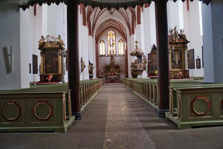 The church in Lidzbark Warmiński, under the invocation of Saints Peter and Paul, is a late Gothic, oriented brick building. The church’s rectangular-plan body holds a nave, two aisles and five bays.