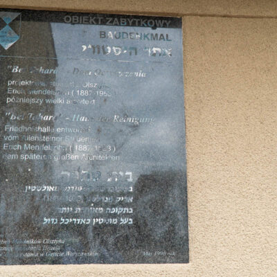 The structure is both the first work by Mendelsohn (probably created as a diploma project) and the only surviving remnant of Olsztyn’s Jewish community.