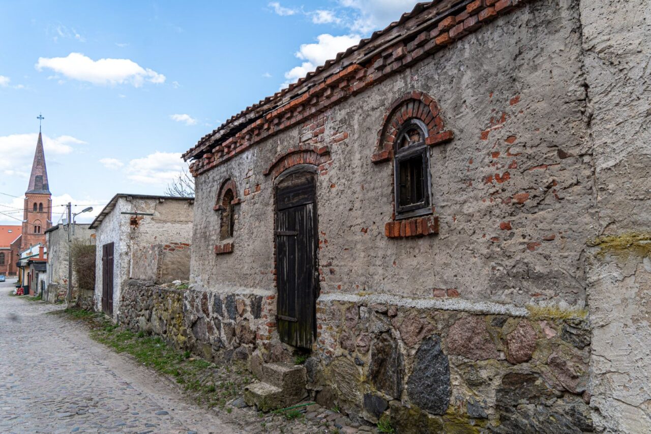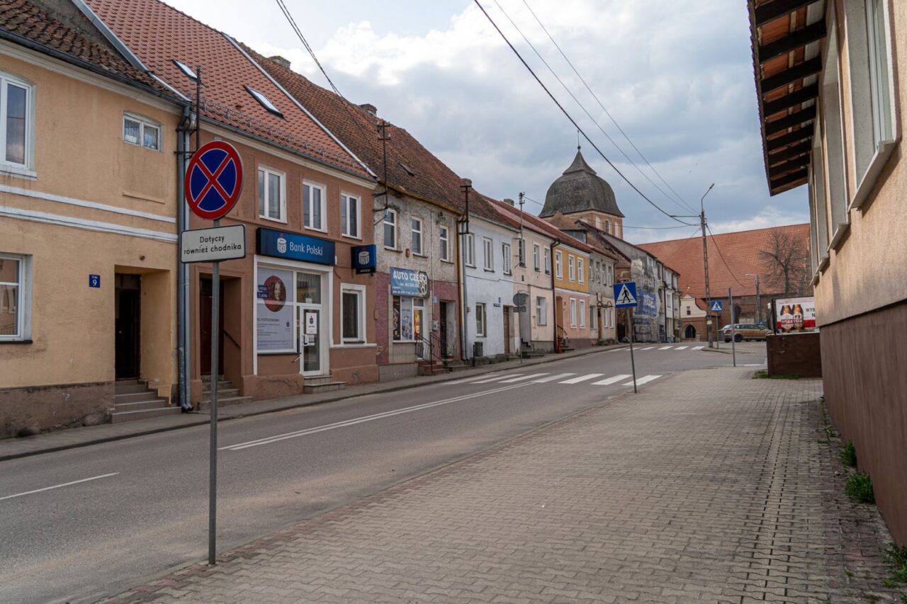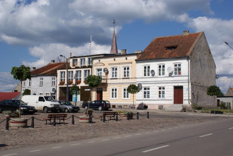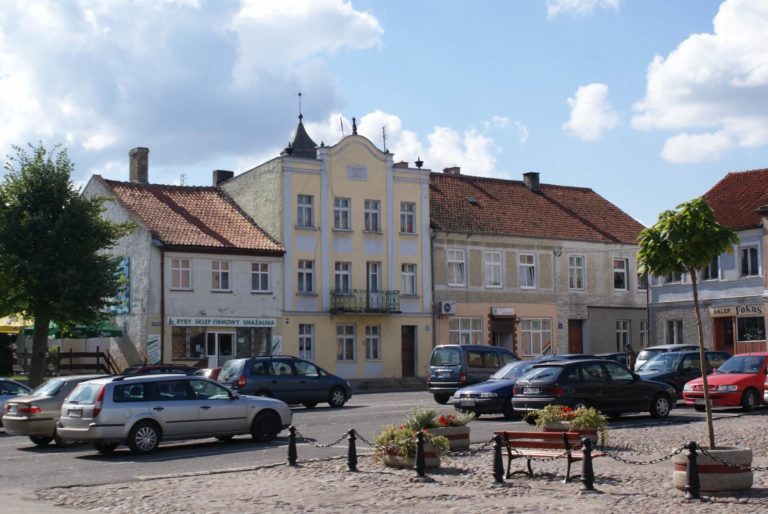 Pasym (before 1945 referred to by its German name Passenheim). It was granted an urban charter in 1386, which it lost with the end of the war and regained in 1997. The town lies in the Mazuria region and is surrounded by three lakes: Leleskie, Kalwa and Grom. 30% of the town was levelled in the war, after which the buildings were gradually rebuilt. The streets surrounding the market have retained their distinctive character.