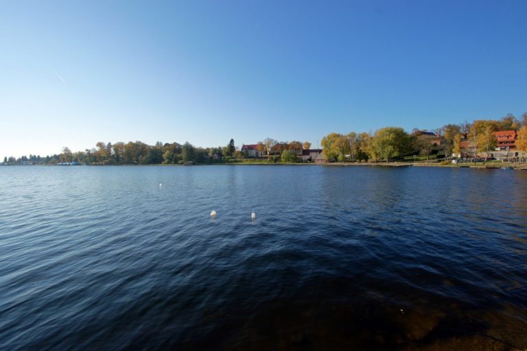 Together they form the largest single body of water within the Mazurian Lake District. The lake, especially its north side, has a highly complex shoreline, with multiple headlands and bays, as well as three islands. The lake’s shores are mostly high, hilly and steep, only the southern part of the eastern shore is flat with some wetlands. There is minimal plant growth.