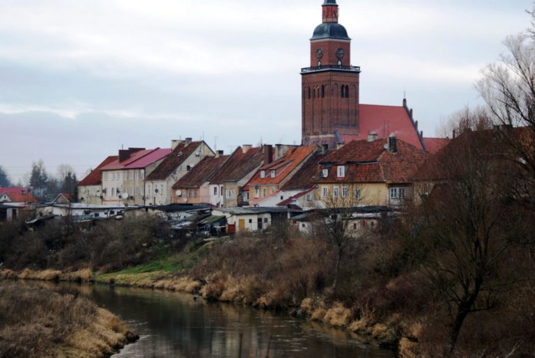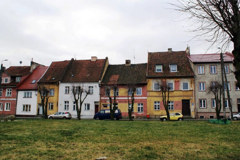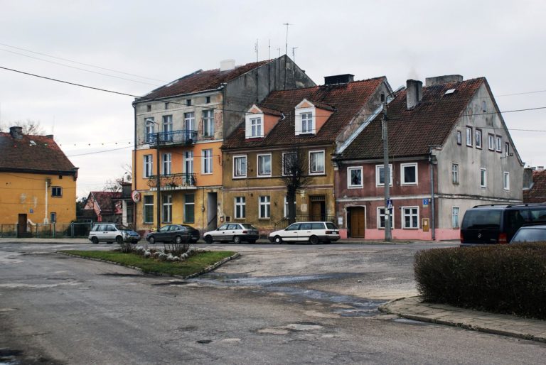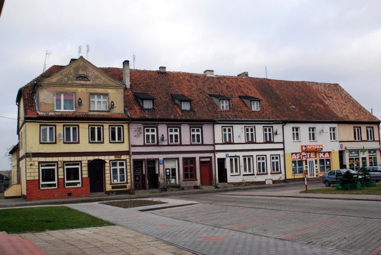 The town is located within the historical area of Lower Prussia. Among the historic monuments of the town are fragments of medieval town walls (14th-century), including the remains of the tower, as well as neoclassical tenement houses from the 18th and 19th centuries (on Kościuszki Street).