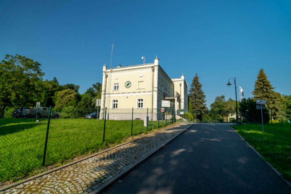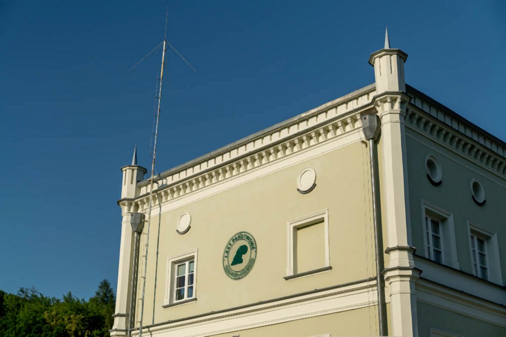 After World War II, the estate was handed over to the State Forestry Agency, and the building itself became the headquarters of the Elbląg Forest Division – a function it serves to this day. At the turn of the 20th and 21st centuries, the Division funded and carried out a thorough renovation and conservation effort, supervised and directed by the Monument Conservation Officer. The palace is a two-storey, neo-Gothic building erected on an irregular plan, with a white-beige facade and various embellishments: terraces, turrets and columns.