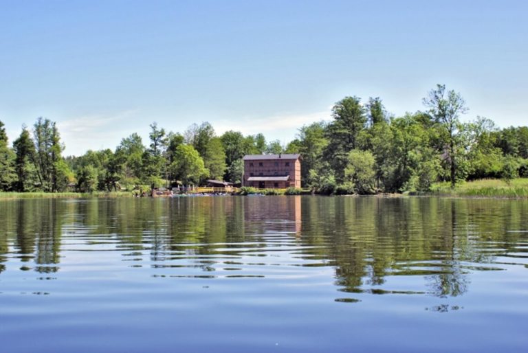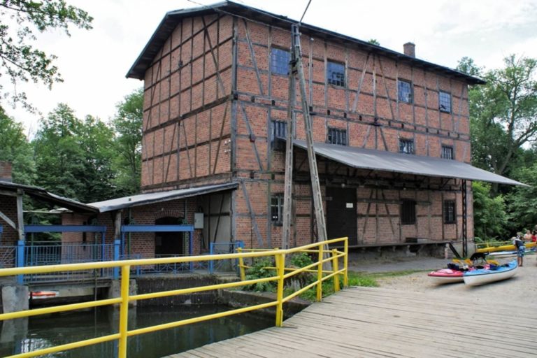 In Zielony Lasek, on the Krutynia River, stands a 19th-century historic water mill.