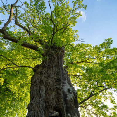 To jeden z najgrubszych dębów szypułkowych w Polsce. Obwód drzewa wynoszący 1003 cm, lokuje je na drugim miejscu w Polsce. Wiek drzewa został oszacowany na 720 lat. W części przyziemnej znajduje się obszerna dziupla (utrudniająca dokładny pomiar obwodu), w której już według opisów sprzed 100 lat mieściło się 11 żołnierzy. Dąb kilkukrotnie zmieniał nazwę. Od 1898 r. zwany był Dębem Królewskim – w tym czasie właścicielem majątku w Kadynach był cesarz niemiecki Wilhelm II. Nazywany był również 1000-letnim Dębem Niemiec. Po II wojnie drzewo nazywano Dębem Kadyny, od imienia księżniczki Kadyny, założycielki miejscowości. Potem nazywany Dębem Odrodzenia Polski. Obecna nazwa pochodzi od nazwiska lokalnego bohatera, rycerza Jana Bażyńskiego (1390-1459), dawnego właściciela Kadyn. Drzewo rośnie tuż przy drodze z Elbląga do Fromborka.
