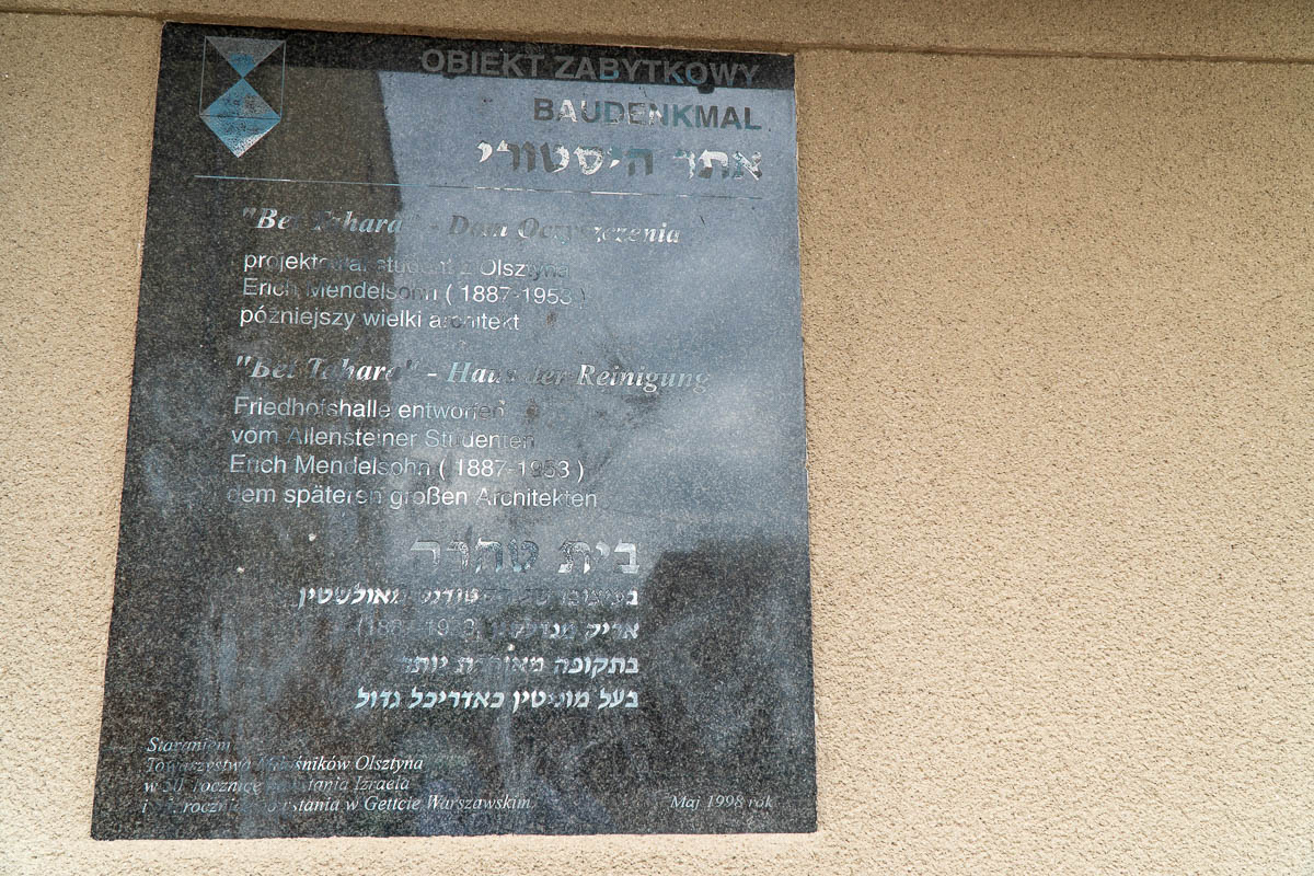 Obiekt jest jednocześnie pierwszym dziełem (najprawdopodobniej pracą dyplomową) Mendelsohna oraz ostatnią zachowaną pamiątką po gminie i ludności żydowskiej w Olsztynie.