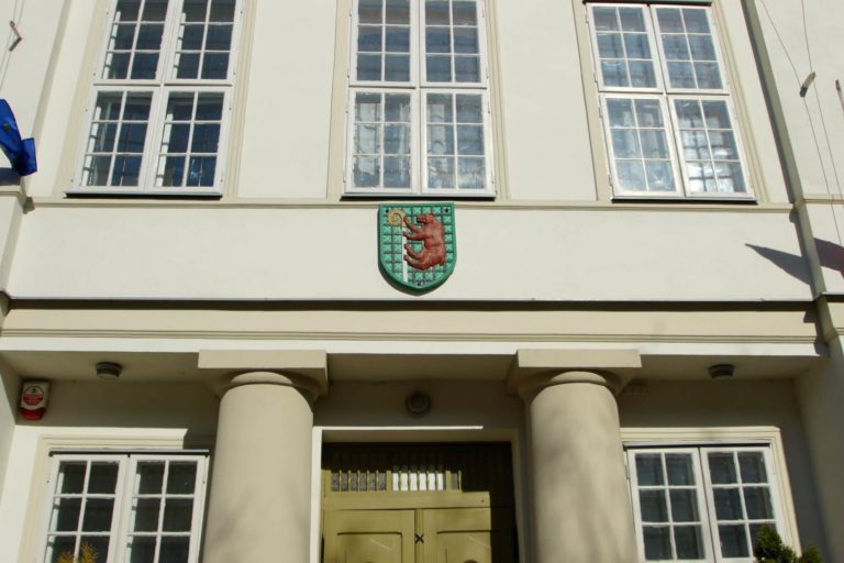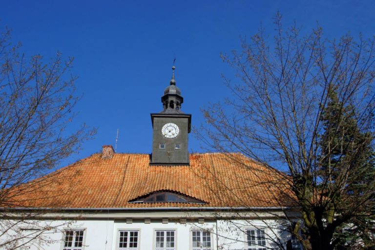 Ratusz w Reszlu wybudowany został w stylu klasycystycznym w latach 1816-1820, na szczycie znajduje się wieżyczka zegarowa.